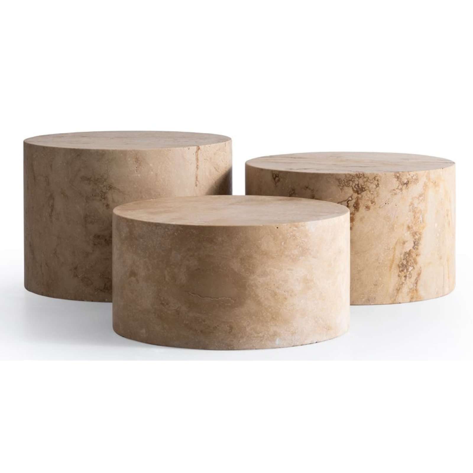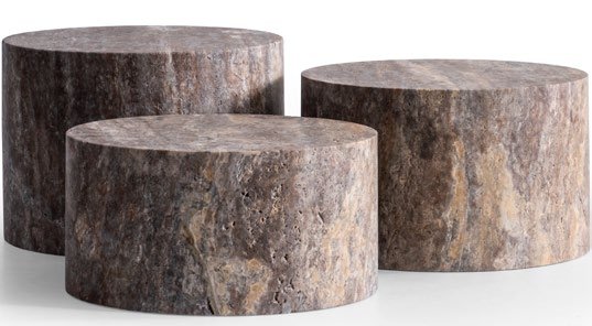 The 700 Kite Center Table Set features three elegantly designed tables crafted from natural stone, available in Dark and Light finishes. Perfect for modern living spaces, this set combines style and functionality.