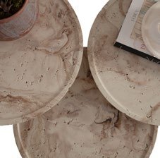 Available in three different heights—54 cm, 50 cm, and 44 cm—this set offers flexibility for arranging coffee cups, books, décor, or other daily essentials. The travertine surfaces are smooth and easy to clean, making them both functional and visually appealing. Ideal for those who value elegance and versatility, these side tables elevate your home décor effortlessly.