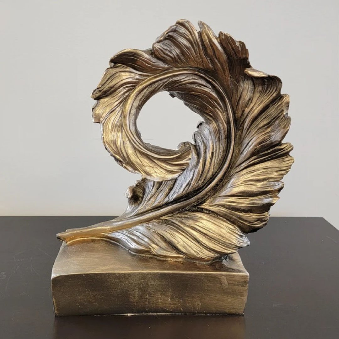 The Golden Serenity Leaf Sculpture is a versatile tabletop accessory that combines natural inspiration with artistic elegance, making it a timeless addition to any space.