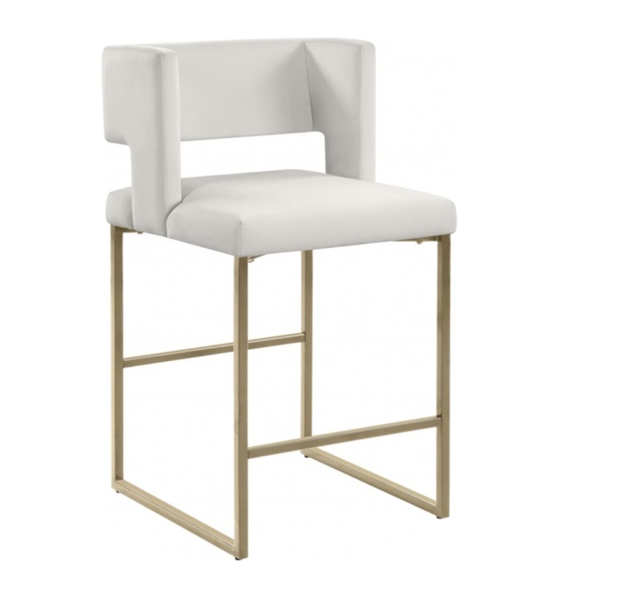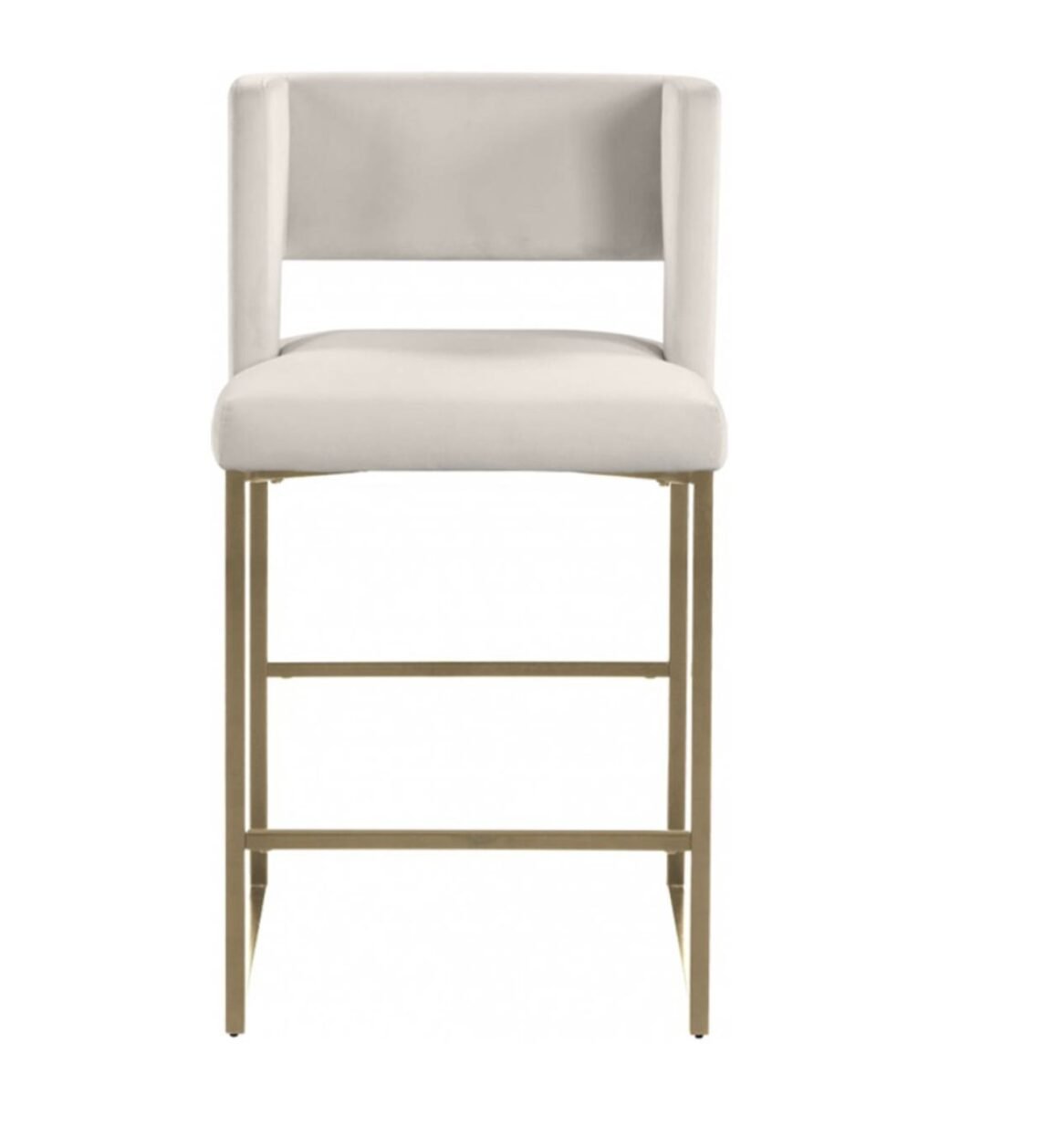 Add elegance to your dining space with the Anthony Beige Counter Stool, featuring plush velvet upholstery and splayed gold-finished legs. This modern stool combines comfort, style, and durability, making it perfect for kitchen islands and breakfast bars.