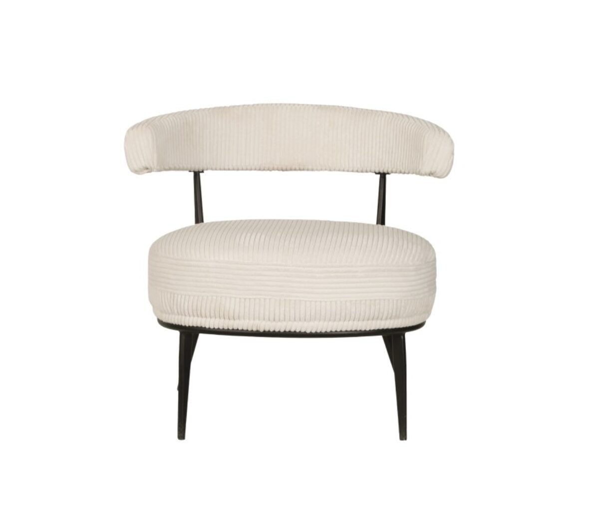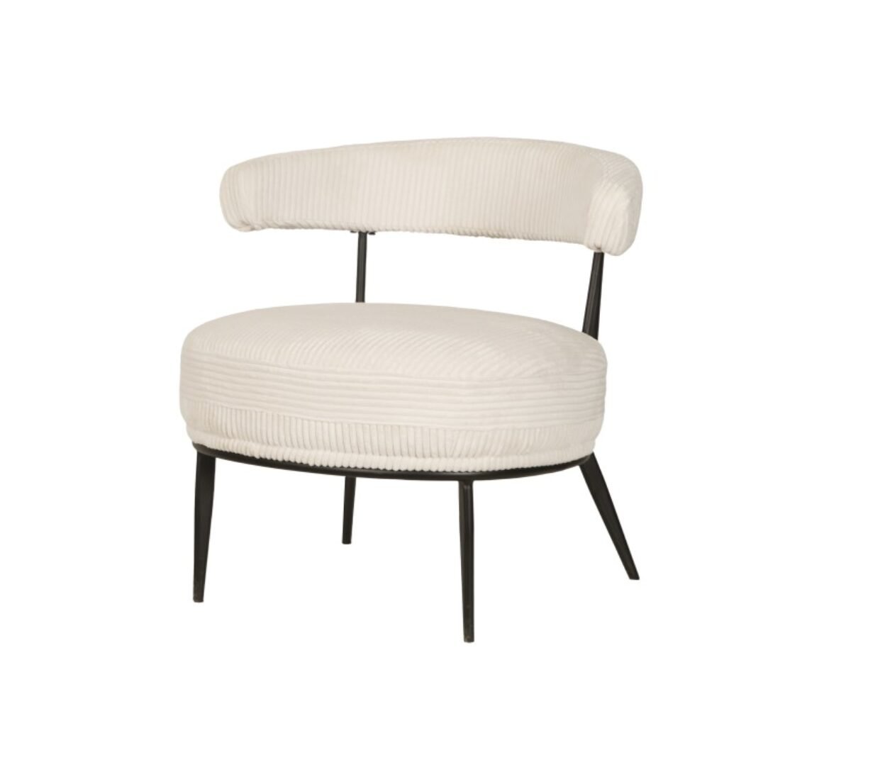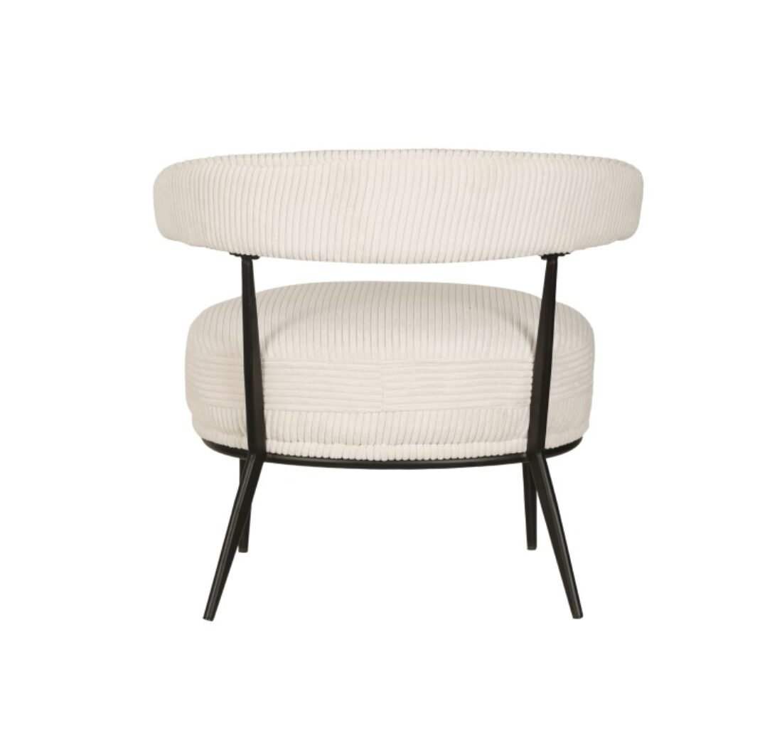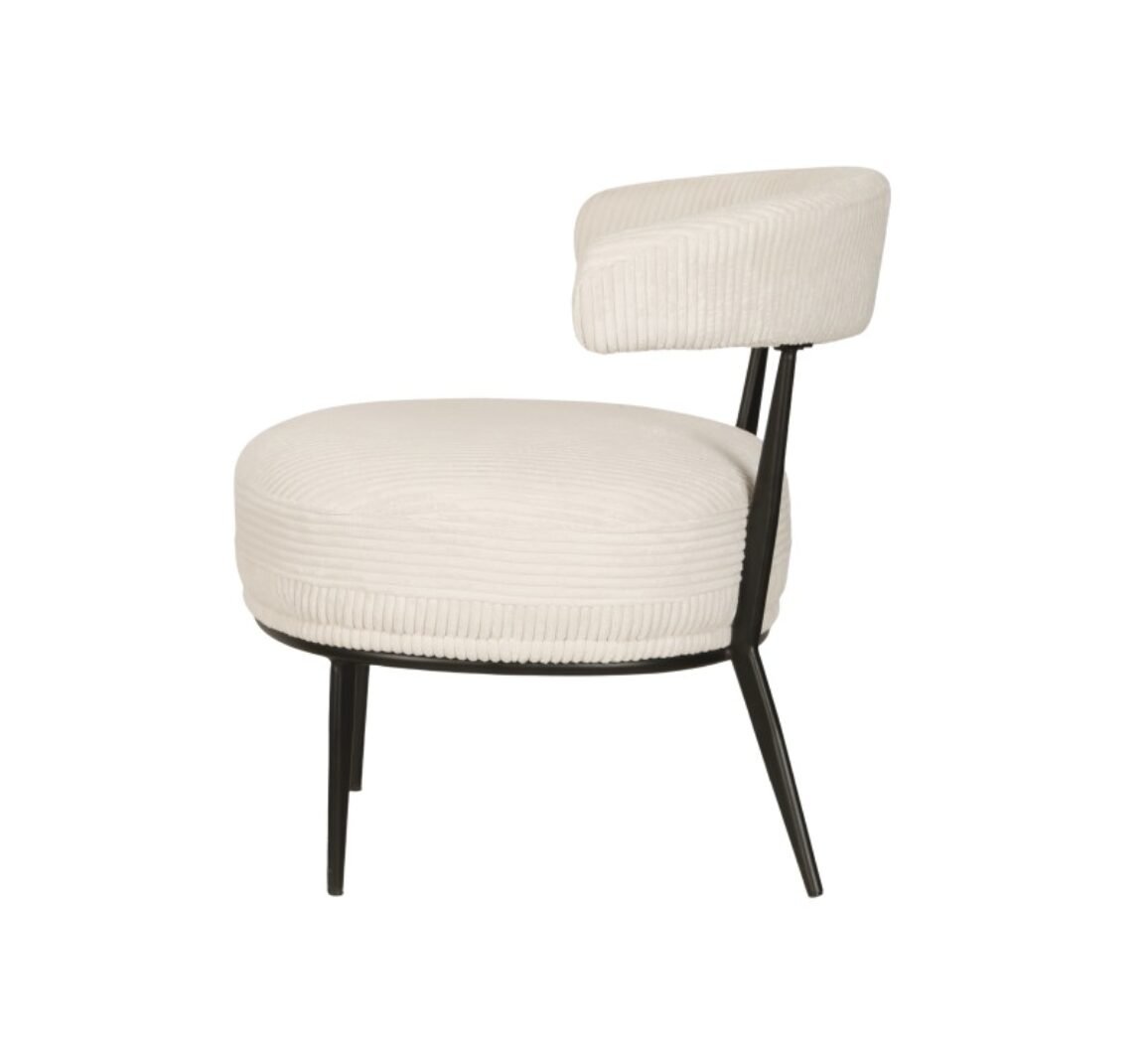 The Ariana accent chair in cream offers a perfect blend of modern style and comfort. Featuring a curved ergonomic back, powder-coated splayed legs, and premium textured fabric, it adds elegance to any living space.