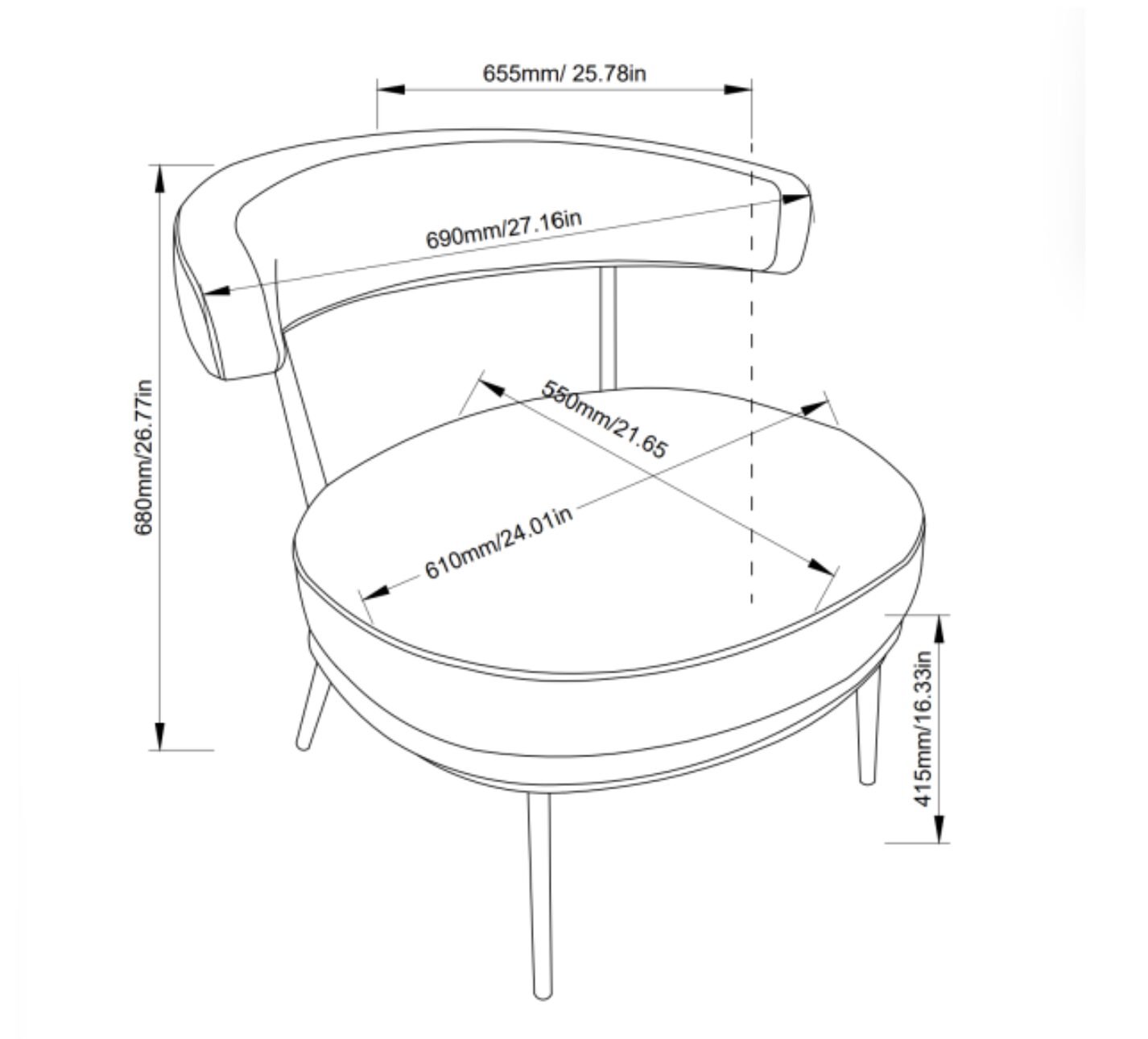 - Dimensions (inches): 24.01″ L x 21.65″ W x 26.78″ H