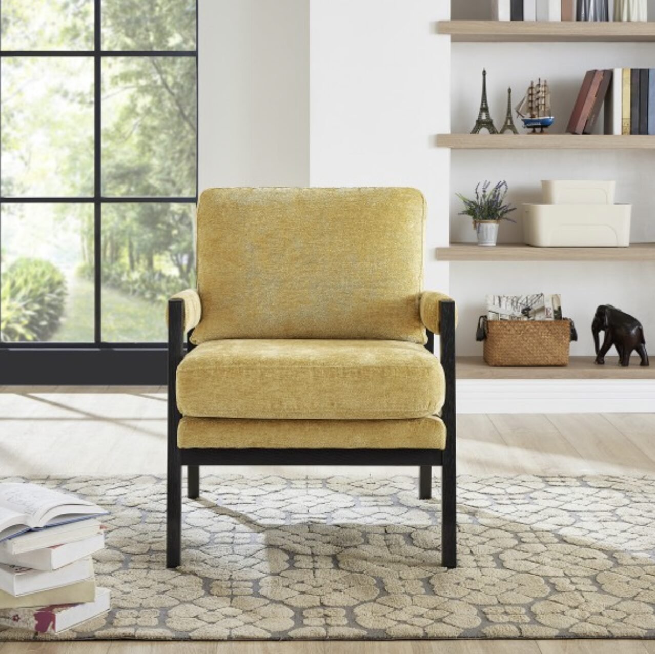 - Upholstery: Premium chenille fabric in yellow finish