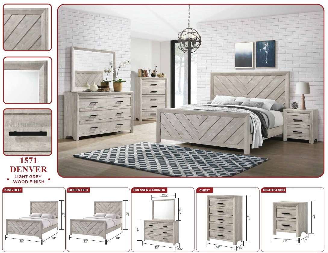 The Denver Bedroom Furniture Set combines modern design with everyday functionality. Crafted from premium engineered wood, this bedroom set features a queen bed, dresser with mirror, chest, and nightstands, providing ample storage while maintaining a sleek, contemporary aesthetic.
