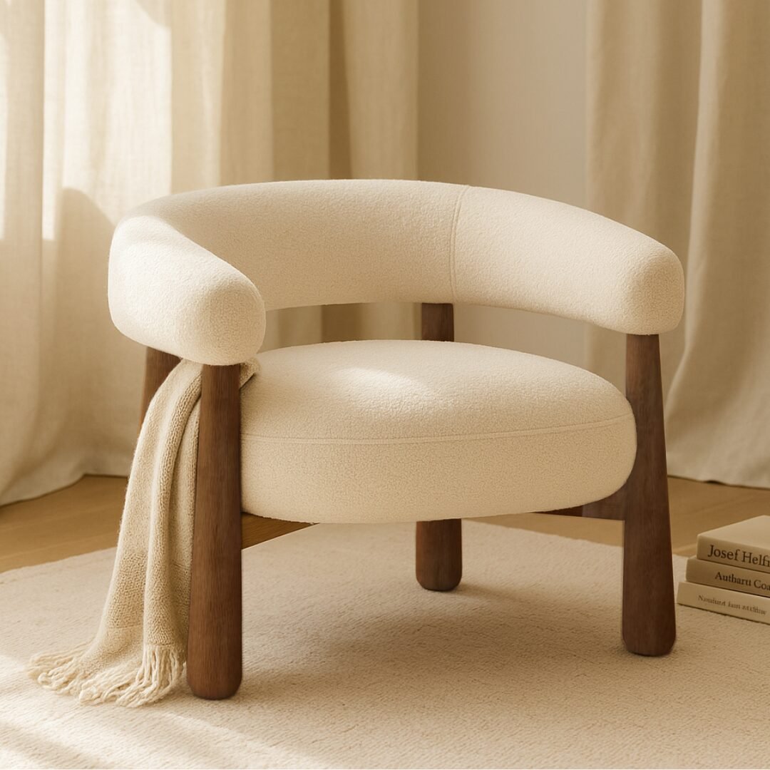 Elevate your interiors with the Nero Accent Chair in Beige Linen. Featuring a sculptural curved backrest, soft linen upholstery, and a solid walnut frame, this chair blends organic elegance with modern craftsmanship. Perfect for living rooms, bedrooms, or offices, it offers both comfort and statement-making style.