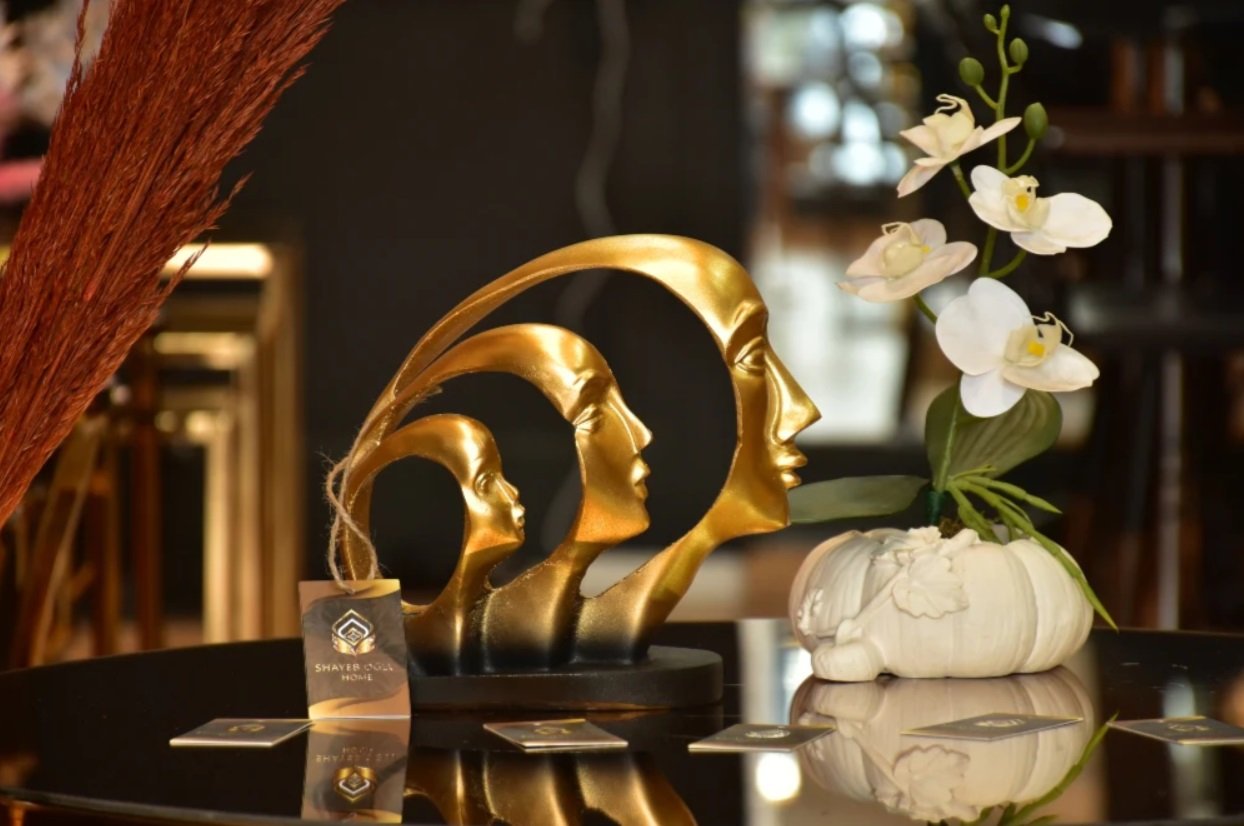 The Infinity Hollow Faces Sculpture is a sophisticated and eye-catching decorative piece that merges modern artistry with conceptual design, making it a unique addition to your living space.